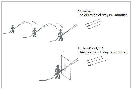 These hoses are established near the mouth of gusher. Since the intensity of heat radiation from gusher is very high, the echelon protection of firemans