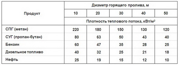 Среднеповерхностная плотность теплового излучения горящего пролива